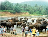 bottle fed and bathed by their human foster fathers at Pinnawala,